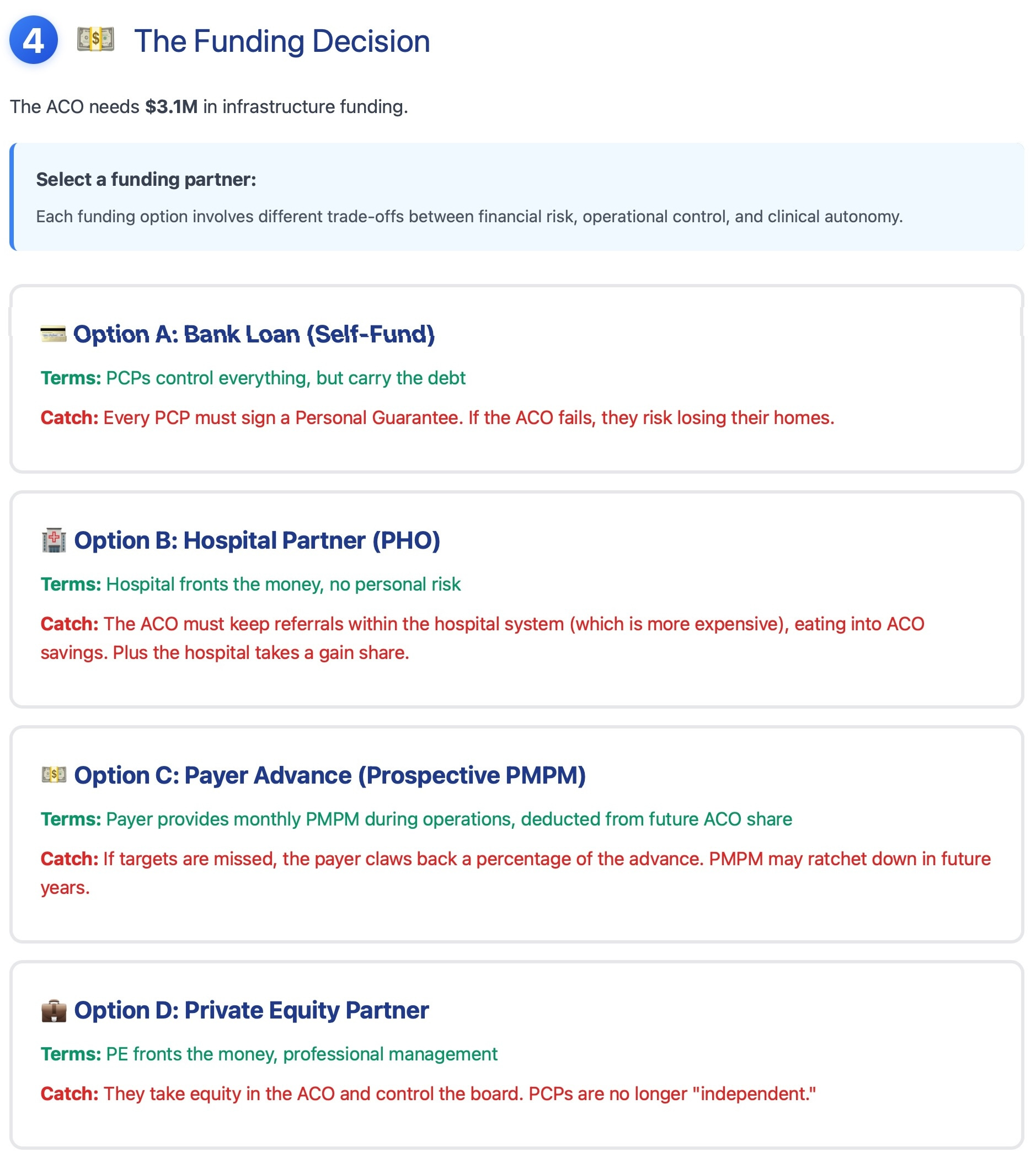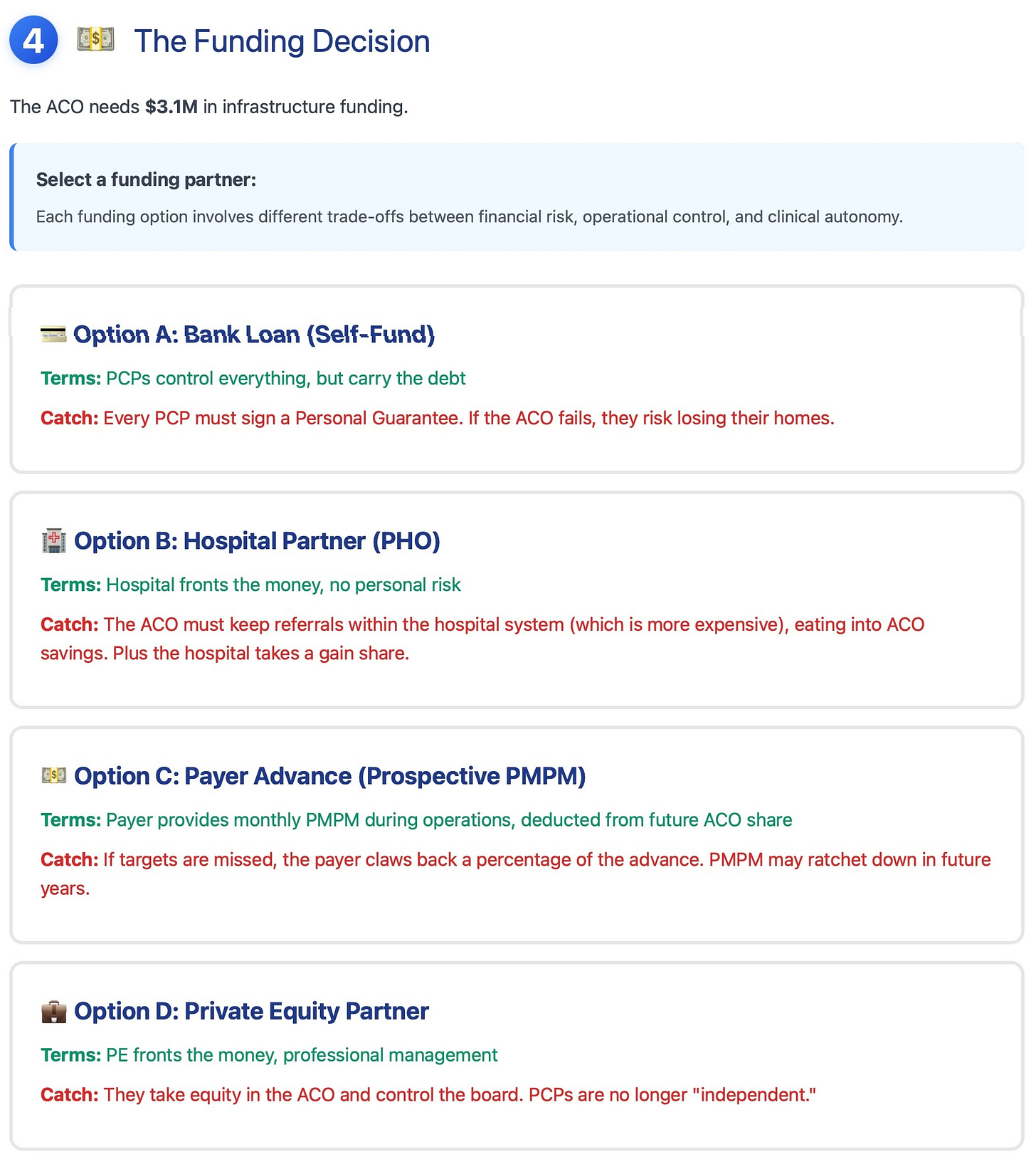 In the next few articles and videos, I will take a deeper dive into individual funding models for the ACO and their trade-offs.